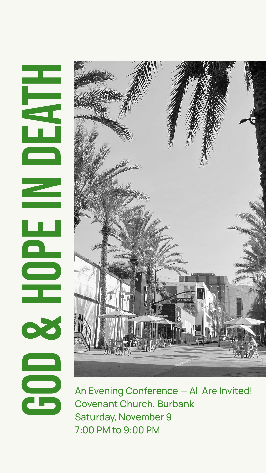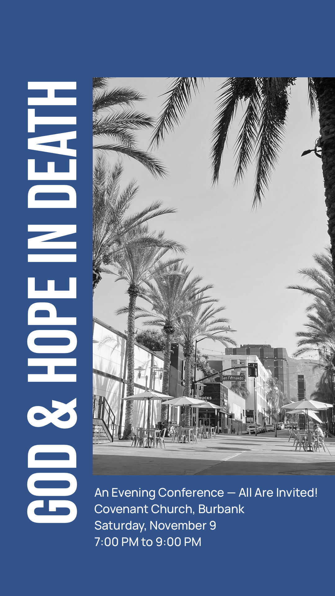 Covenant Church in Burbank presents an evening conference offering gospel hope for those grieving, and guidance for those supporting loved ones and friends, all to the glory of God.