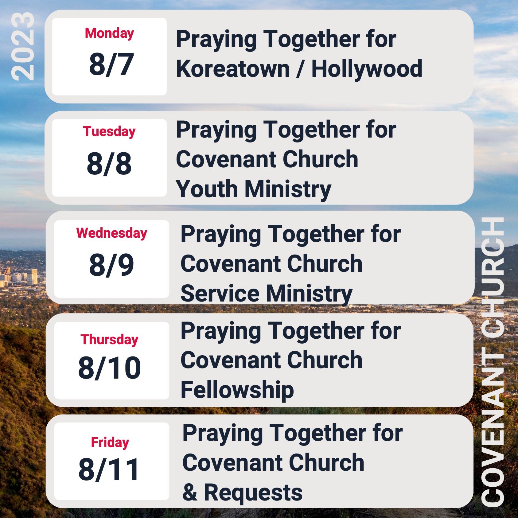 Evening Worship: We hope to see you this evening at 6 PM. There's no live stream for that service, but we'll be in person at 160 S. Victory Blvd., in Burbank.
