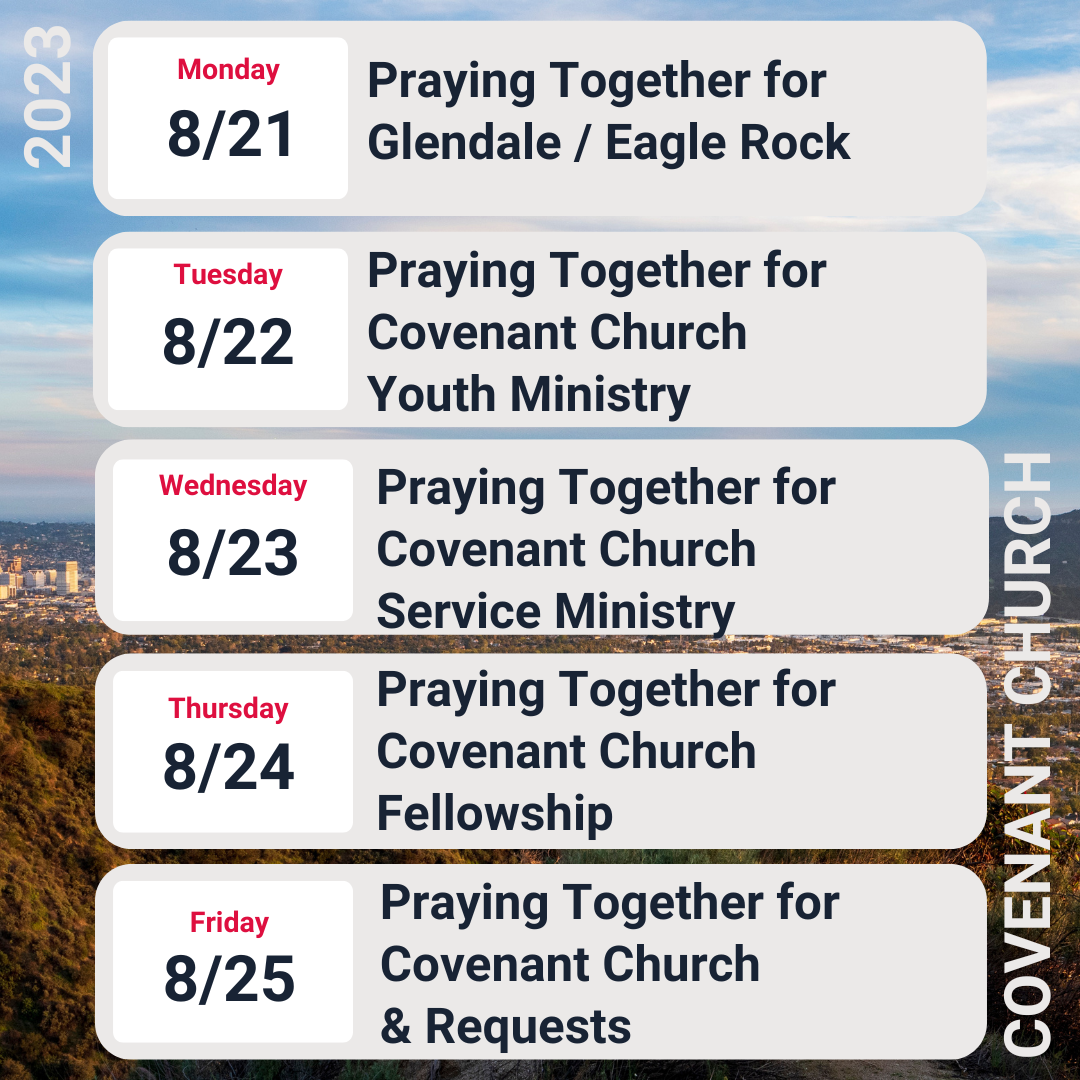 Evening Worship: Please check www.CovenantBurbank.com at 4:00 PM today for a determination as to whether we're gathering for evening worship.