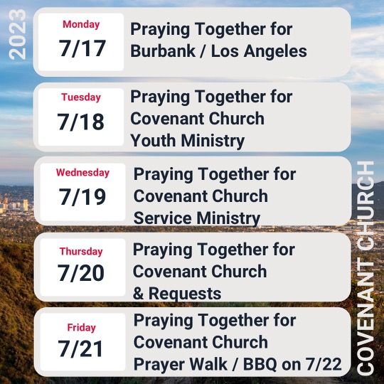 Evening Worship: We hope to see you this evening at 6 PM. There's no live stream for that service, but we'll be in person at 160 S. Victory Blvd., in Burbank.