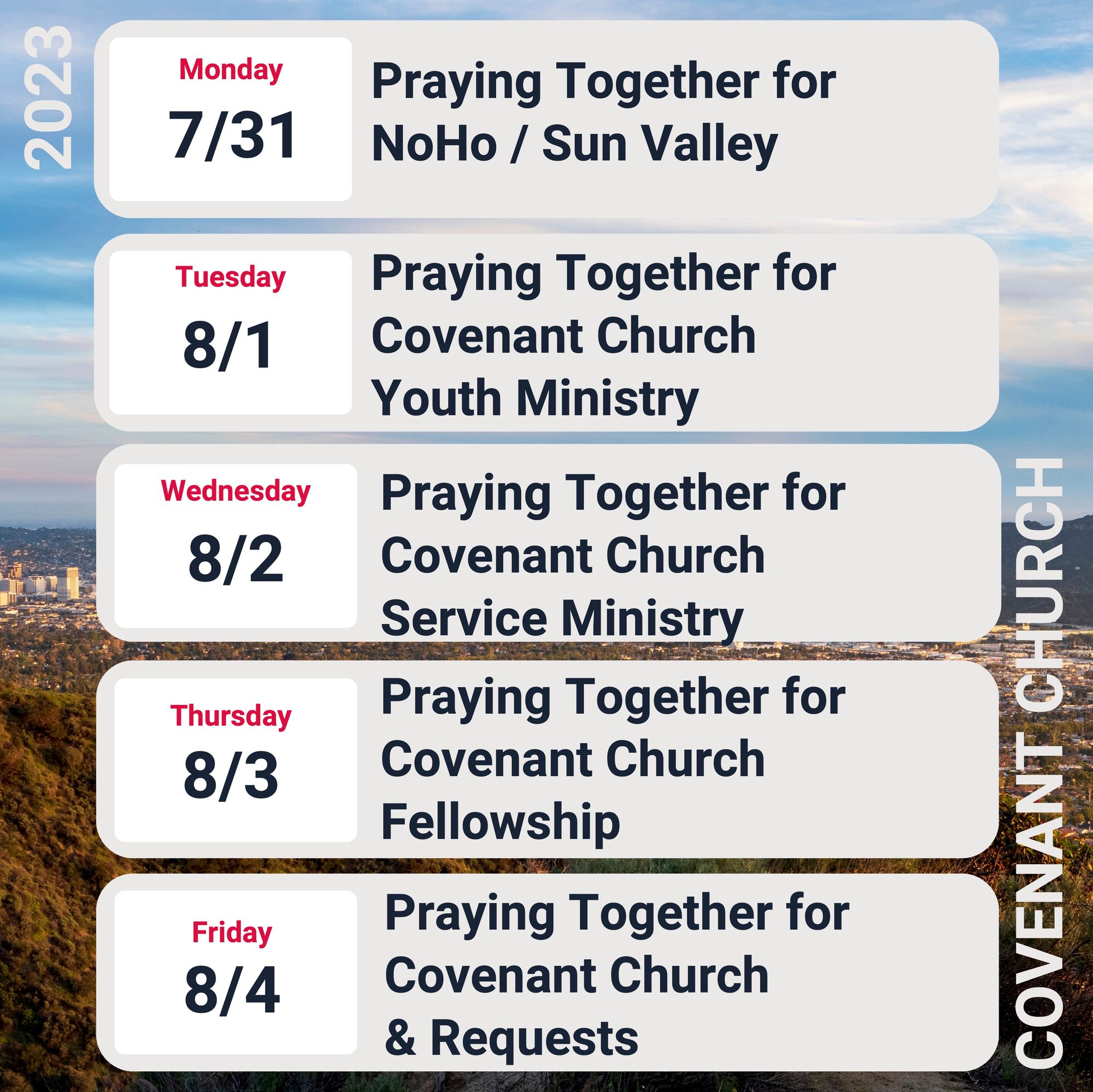Important note! Because of the heat, the large roll-up door will be shut this morning. Please enter through the door with Covenant Church signs (pictured above).