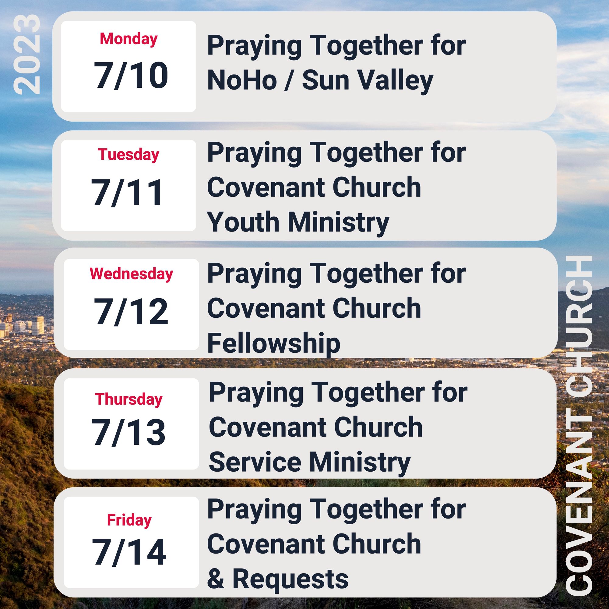 Evening Worship: We hope to see you this evening at 6 PM. There's no live stream for that service, but we'll be in person at 160 S. Victory Blvd., in Burbank.