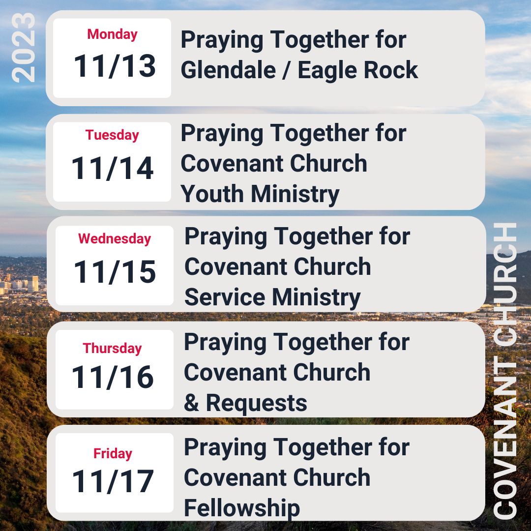 Evening Worship: We hope to see you this evening at 6:00 PM for the Covenant Church evening service. There's no live stream for that service, but we are scheduled to gather in person at 160 S. Victory Blvd., in Burbank.