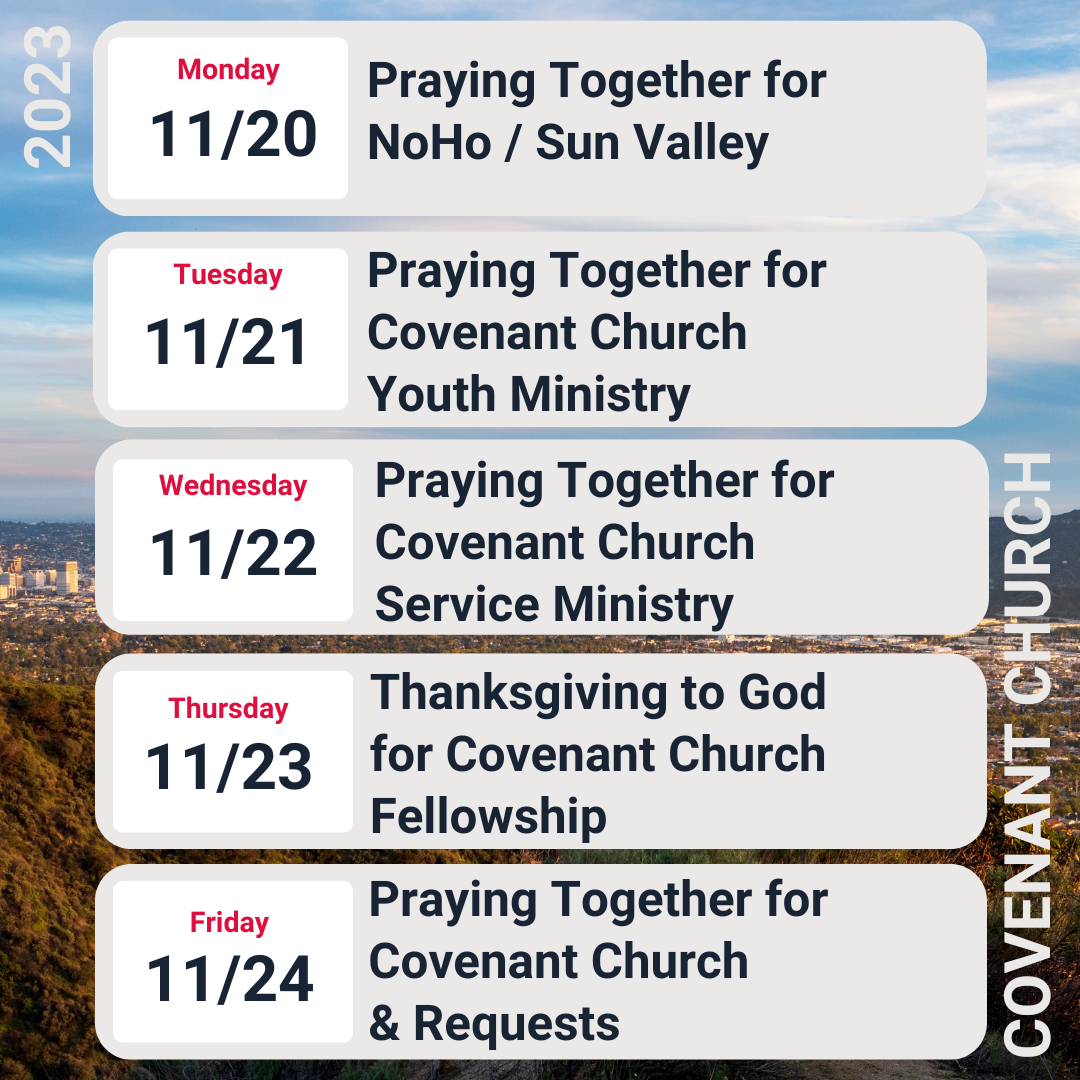 Evening Worship: We hope to see you this evening at 6:00 PM for the Covenant Church evening service. There's no live stream for that service, but we are scheduled to gather in person at 160 S. Victory Blvd., in Burbank.