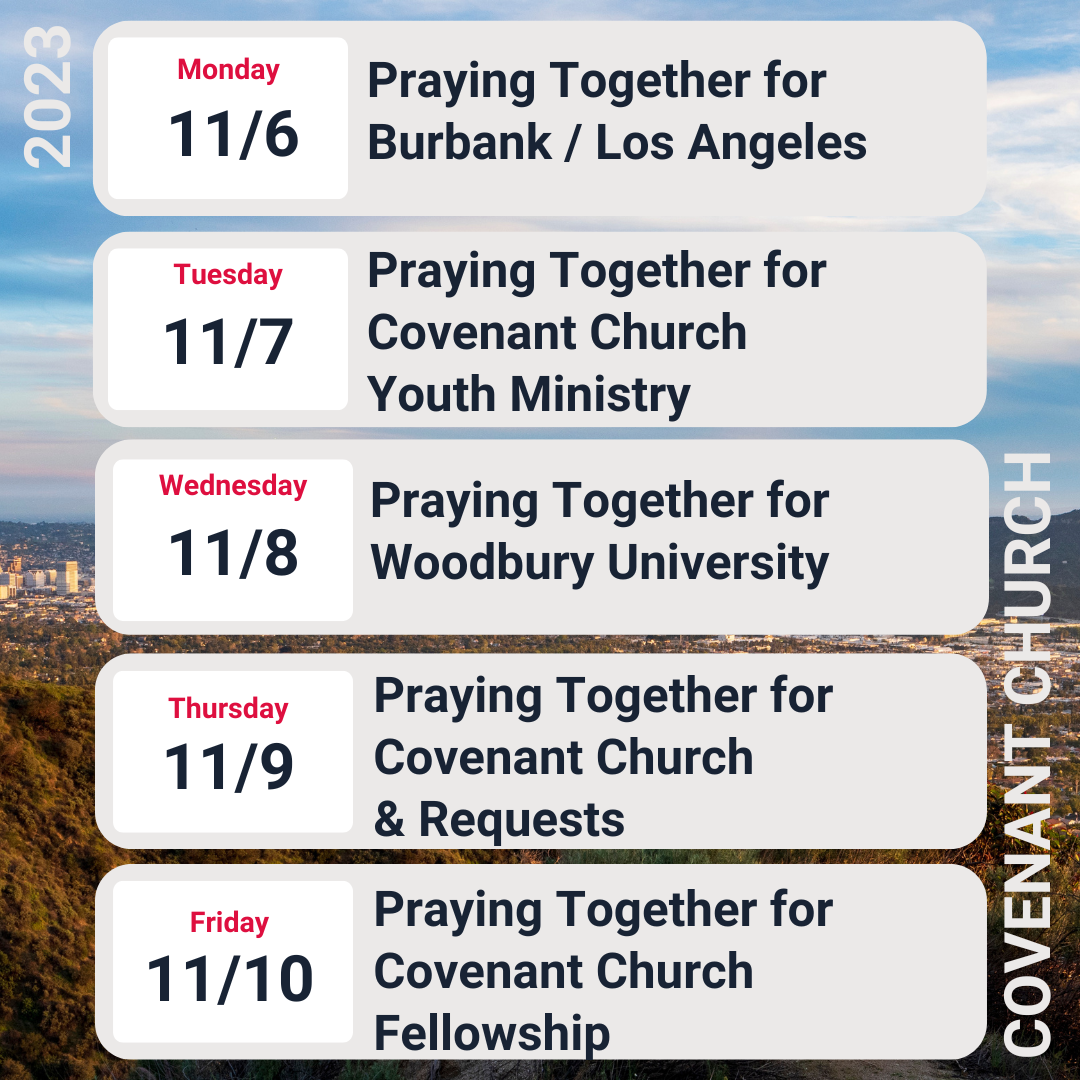 Evening Worship: We hope to see you this evening at 6:00 PM for the Covenant Church evening service. There's no live stream for that service, but we are scheduled to gather in person at 160 S. Victory Blvd., in Burbank.