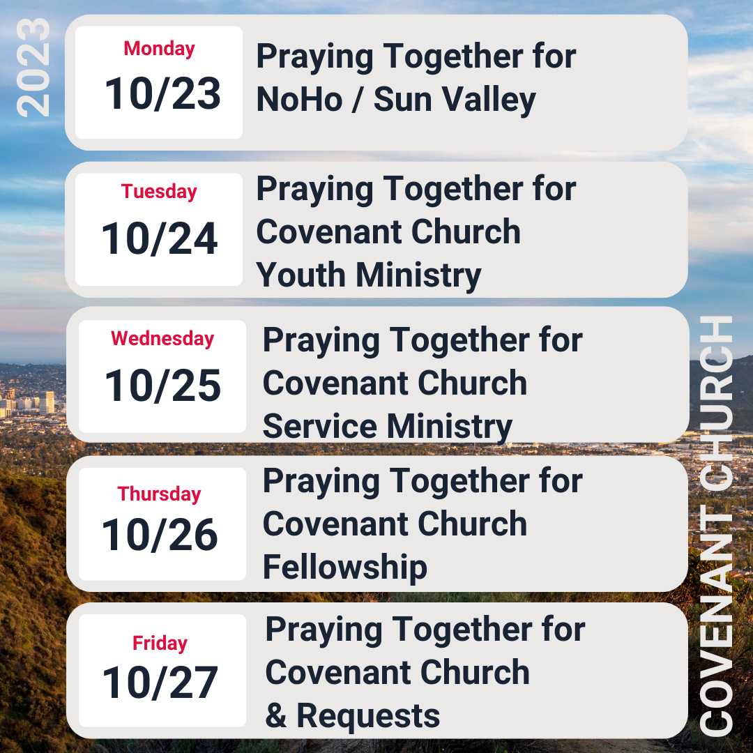 Evening Worship: We hope to see you this evening at 6:00 PM for the Covenant Church evening service. There's no live stream for that service, but we are scheduled to gather in person at 160 S. Victory Blvd., in Burbank.