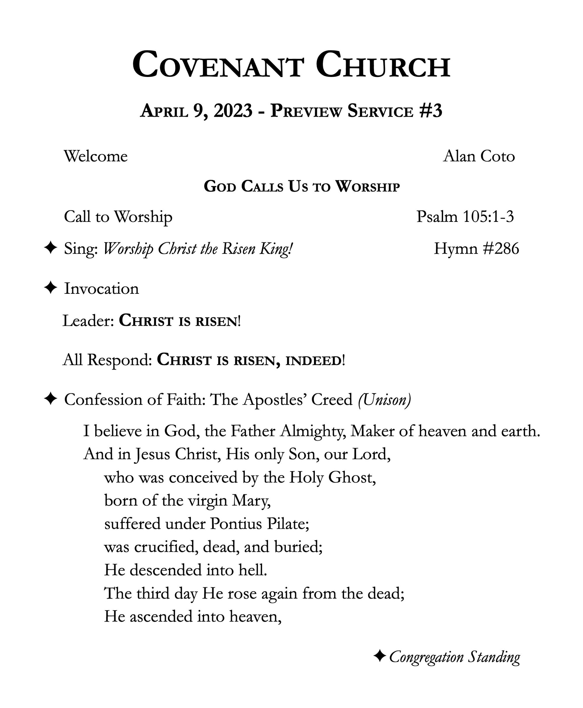 What a wonderful final Preview service and what a joy to have celebrated the resurrection with you at Covenant Church!