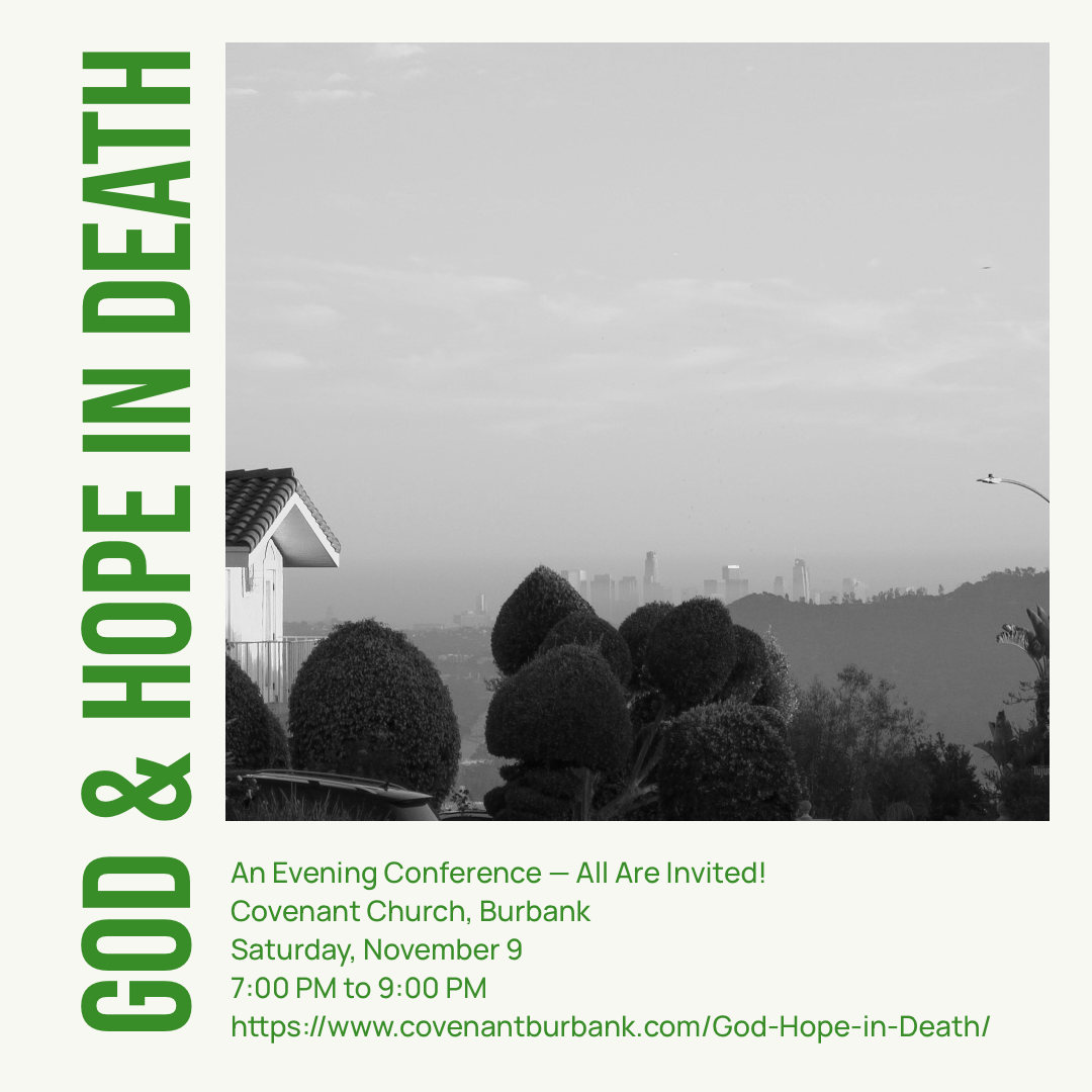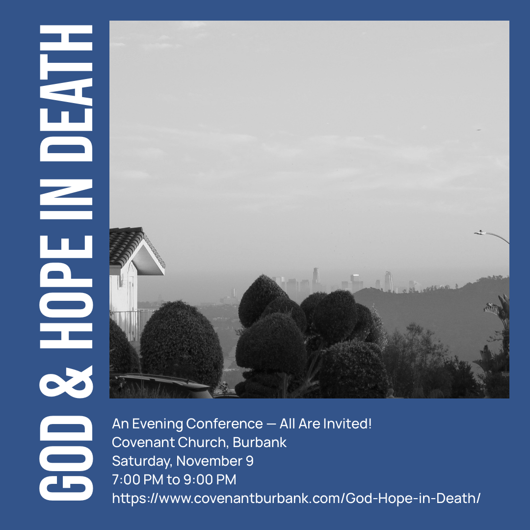 Saturday, November 9, 2024 7:00 PM to 9:00 PM Register Now You Are Invited. Covenant Church in Burbank presents an evening conference offering gospel hope for those grieving, and guidance for those supporting loved ones and