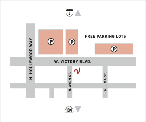 There's street parking on Victory Blvd., or free parking in lots across the street.